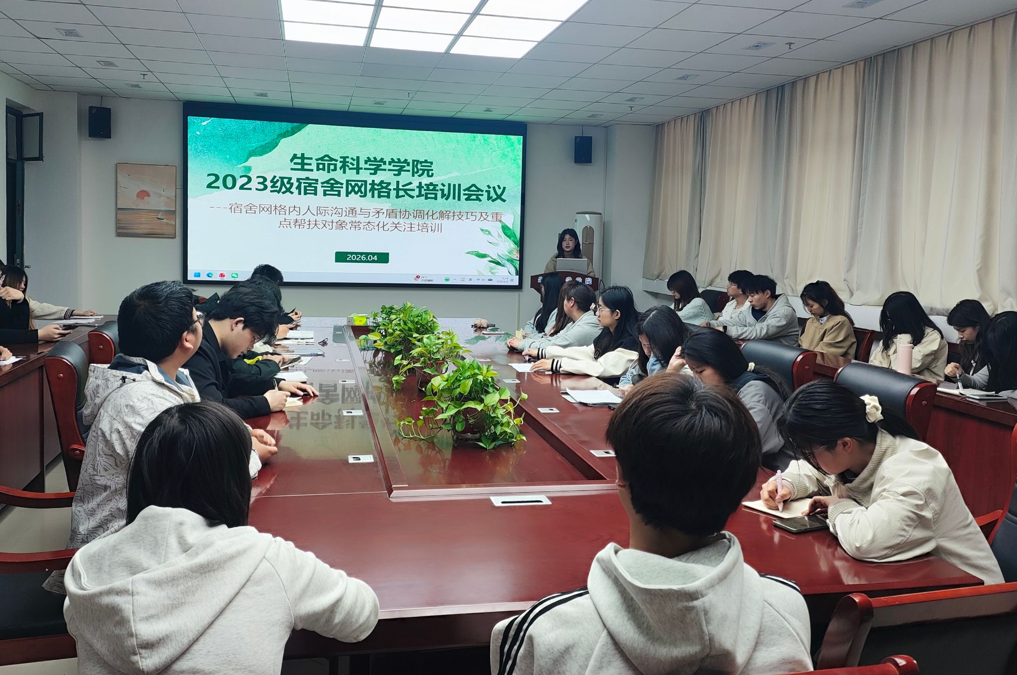 于3月26日至4月3日组织开展学生宿舍四级网格长(宿舍长)集中培训,学院全体宿舍长参加培训。
