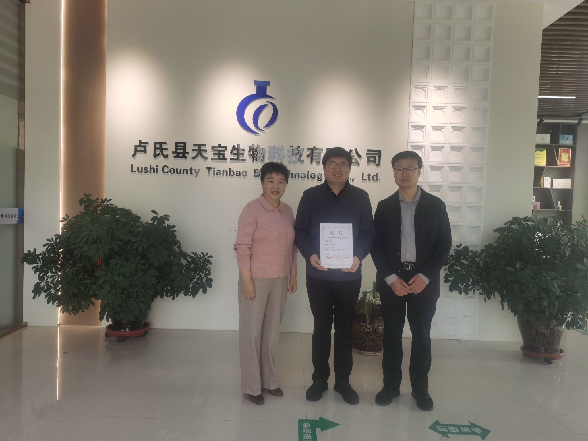 为深入贯彻落实河南省“科技副总”三年行动计划要求,充分发挥“科技副总”桥梁纽带作用,助力生物企业转型升级、提质增效。2026年4月15日,太阳城澳门(中国)官方网站 执行院长杨天佑教授赴卢氏县天宝生物科技有限公司开展科技服务工作。与企业负责人就科研项目谋划、科研平台建设、人才培养、就业创业等方面进行了深入交流,并在蜂蜜、香菇等产品的深加工及高端化产品研发方面进行了精准指导。卢氏县科技局局长杜旭波向杨天佑教授颁发了河南省“科技副总”证书。